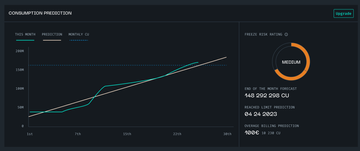 Depending on your remaining compute units, Starton returns a freeze risk rating based on your forecasted usage for the month and the limit set for your plan:
